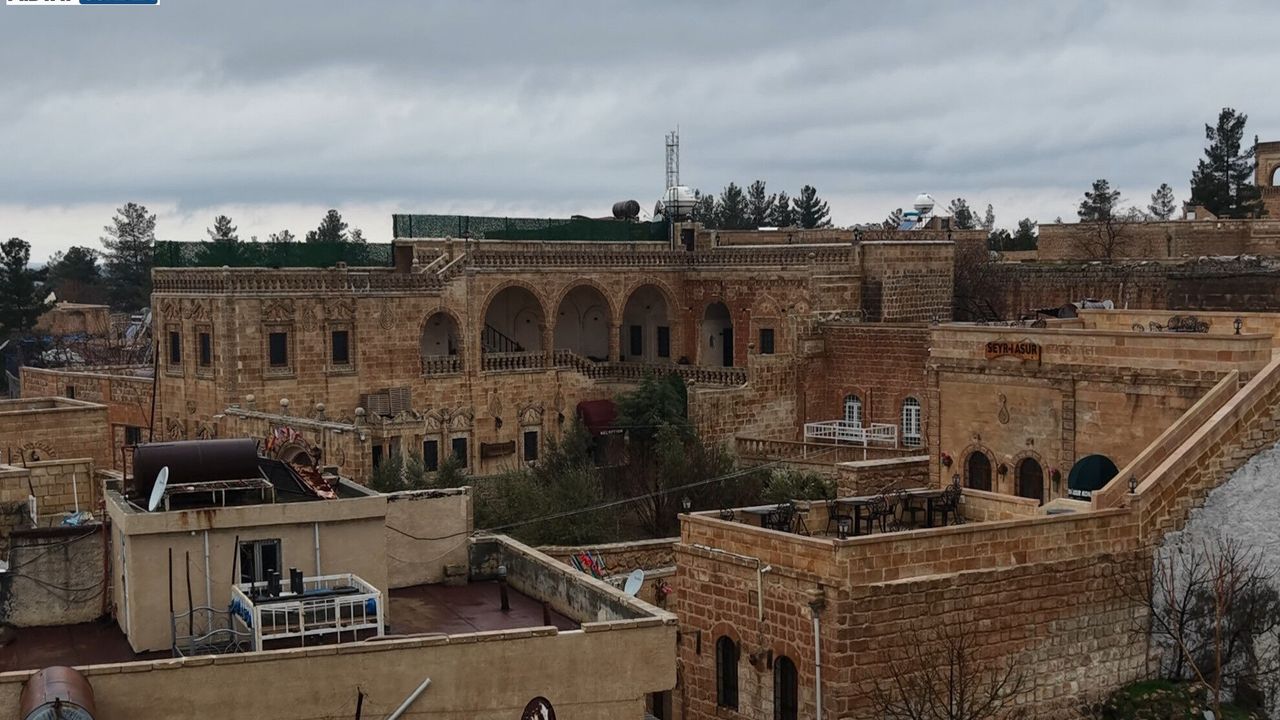 Mardin’in Midyat ilçesinde bulunan tarihi konaklar drone ile havadan görüntülendi.
