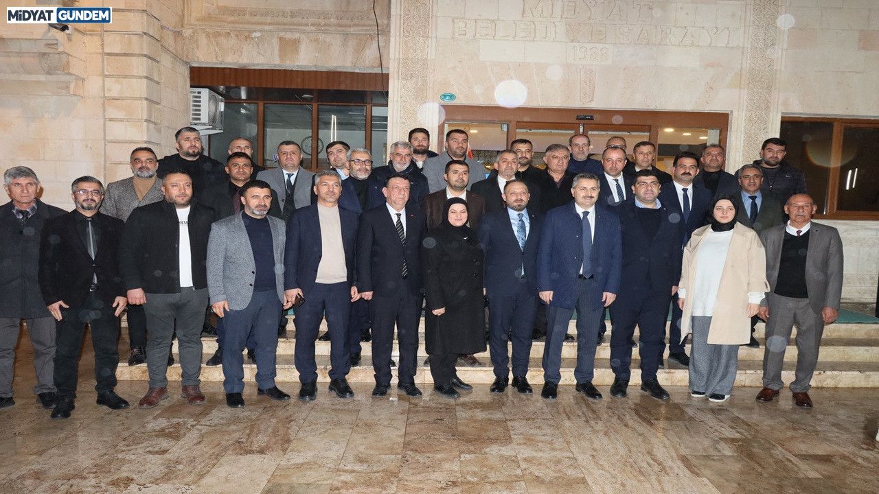 AK Parti Genel Merkez Yerel Yönetimler Başkan Yardımcısı Eyüp Eroğlu, İl Başkanı Mehmet Uncu, İl Yerel Yönetimler Başkanı Mehmet İleri ve Yönetim Kurulu Üyelerinden oluşan heyet, Midyat Belediyesi'nde ağırlandı.