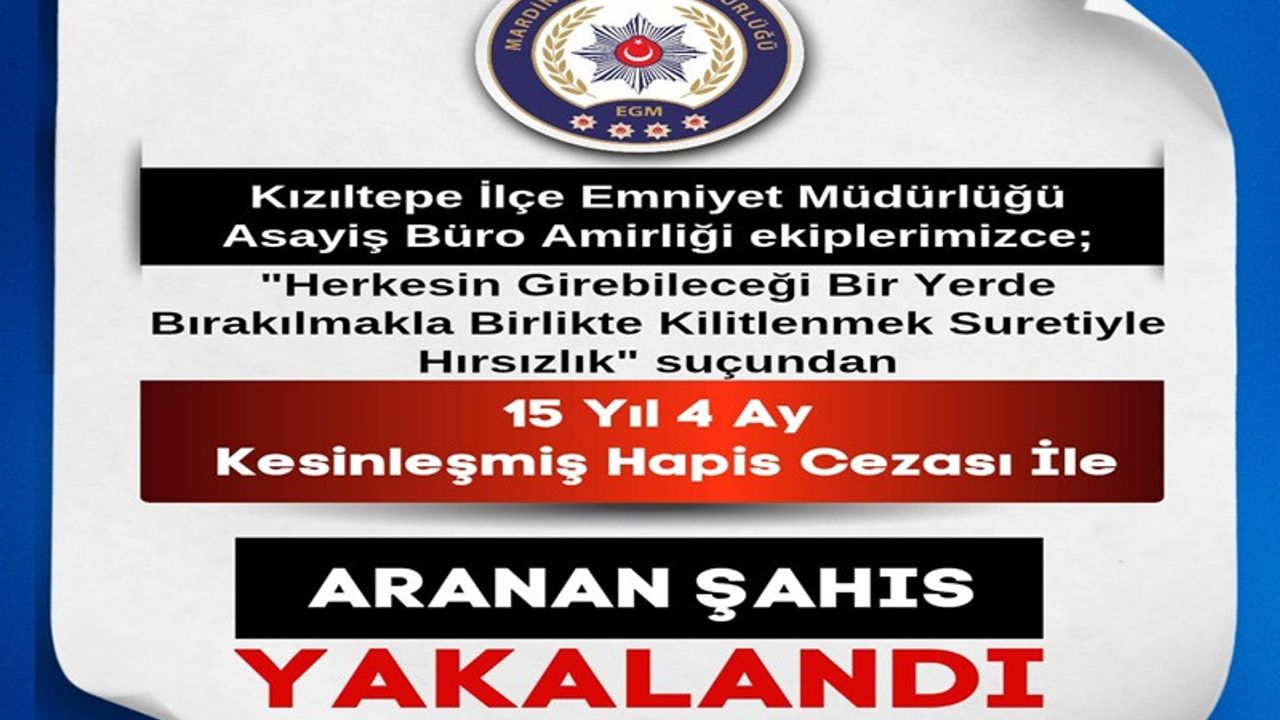 MARDİN / Kızıltepe İlçe Emniyet Müdürlüğü Asayiş Büro Amirliği ekiplerince, aranan şahısların yakalanmasına yönelik yürütülen çalışmalar kapsamında önemli bir operasyon gerçekleştirildi.