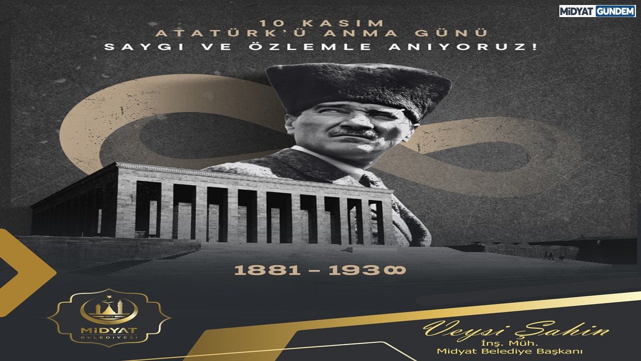 Mardin'in Midyat Belediye Başkanı Veysi Şahin, Gazi Mustafa Kemal Atatürk’ün vefatının 87’nci yıl dönümü dolayısıyla bir anma mesajı yayımladı.
