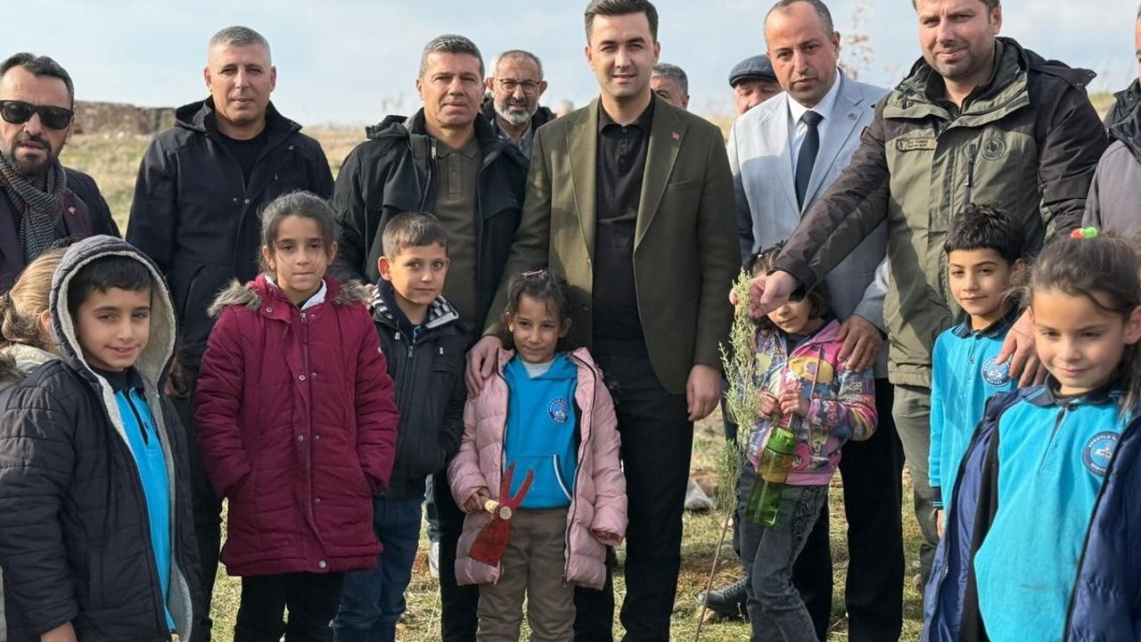 Söğütlü Mahallesi’nde düzenlenen etkinliğe Midyat Kaymakamı Mehmet Kaya,Midyat Belediye Başkan Yardımcısı Mahsum Cengiz, Söğütlü Mahalle Muhtarı Hasan Özdemir, bizzat katılarak fidanları toprakla buluşturdu.