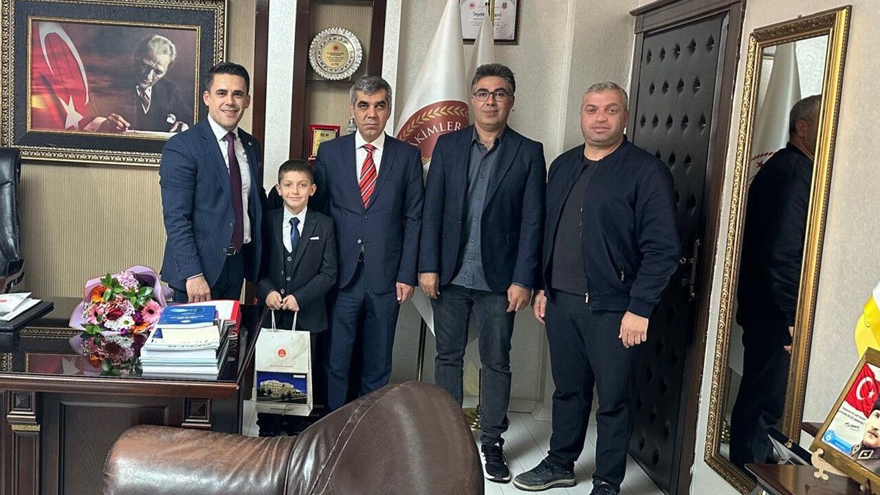 Midyat Mustafa Kemal İlkokulu 3/C sınıfı öğrencisi Fatih Erdem Aykat, kutlamalar çerçevesinde Cumhuriyet Başsavcısı M. Şenol Çeliker’i makamında ziyaret etti. Okul Müdürü Ali Arpağ ve Sınıf Öğretmeni Mehmet Şerif Çelik’in de eşlik ettiği ziyarette, Aykat temsili olarak Başsavcılık koltuğuna oturdu.