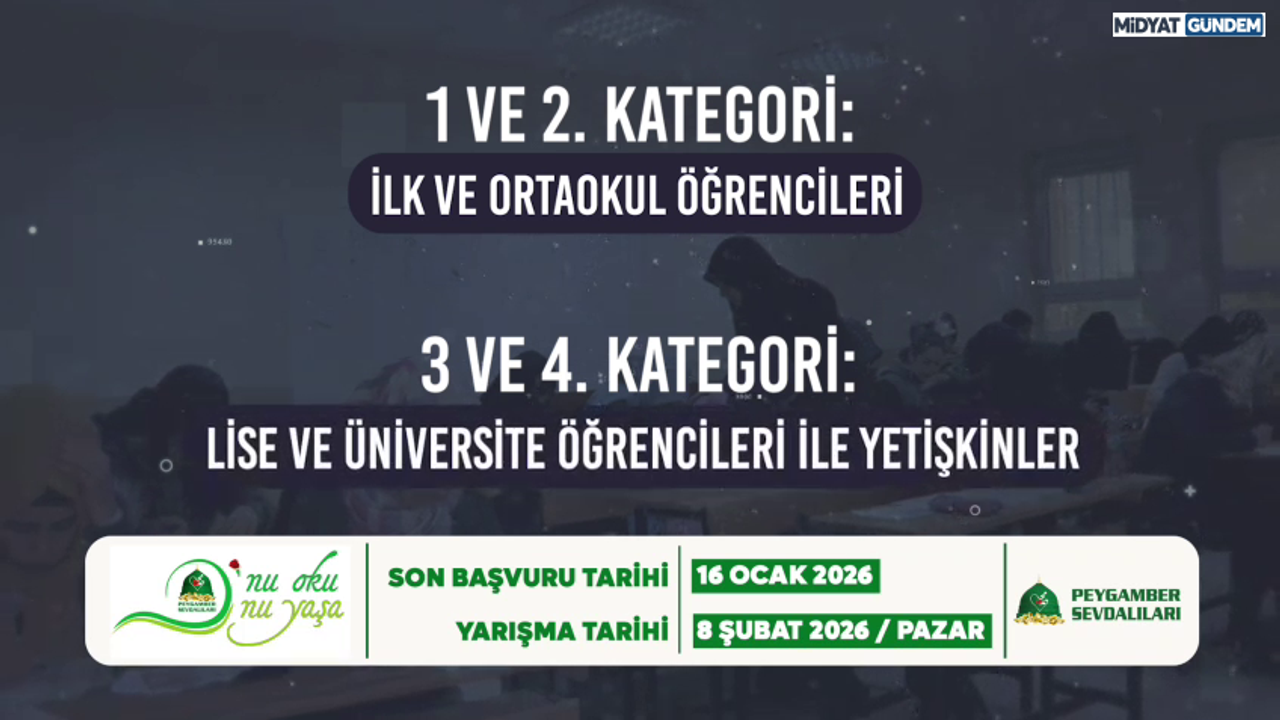 MARDİN/MİDYAT - "Onu Oku, Onu Yaşa" sloganıyla yola çıkılan yarışmada, katılımcıların Efendimizin (sav) hayatını derinlemesine öğrenmeleri ve bu rehberlikte yürüyüşlerini güçlendirmeleri hedefleniyor.