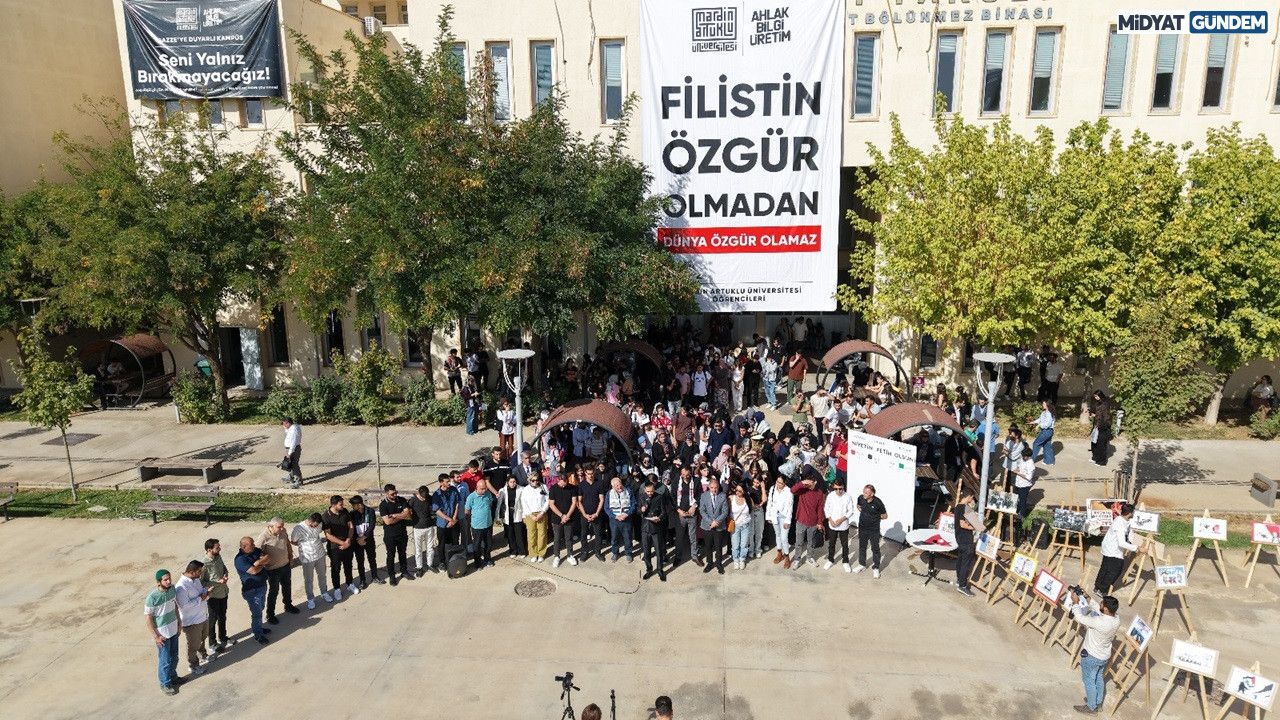 Mardin Artuklu Üniversitesi öğrencileri, kampüste sürdürdükleri eylemlerin sadece sloganlarla sınırlı kalmadığını belirterek, “Kurduğumuz çadırlarda eğitim faaliyetleri, boykot çağrıları ve yardım organizasyonlarıyla bu zulme baş kaldırıyoruz. Toplumu bilinçlendirmeye, insanları harekete geçirmeye devam edeceğiz” dediler.