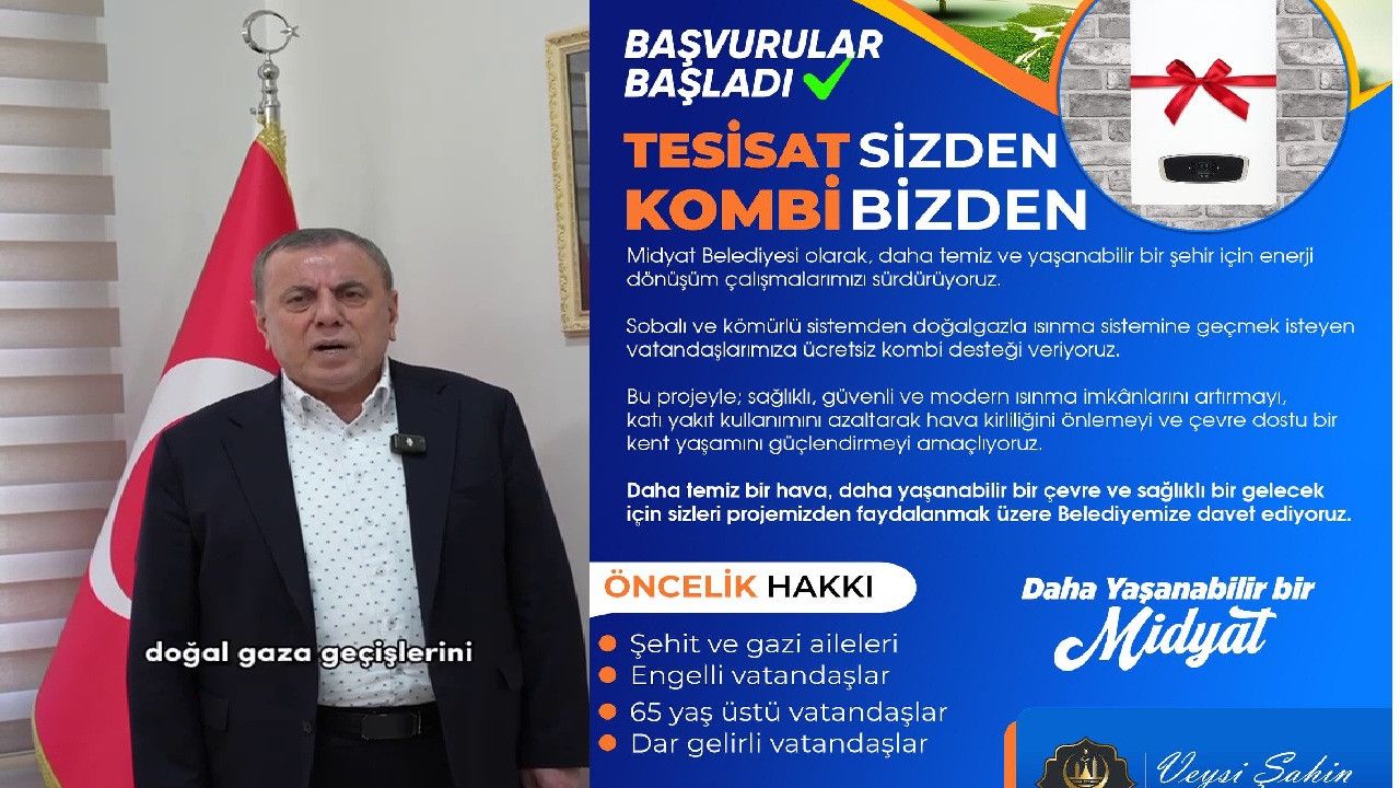 Belediye Başkanı Veysi Şahin, sosyal medya hesabından yaptığı açıklamada, sobalı veya kömürlü ısınma sistemini kullanan vatandaşlara ücretsiz kombi desteği verileceğini duyurdu.